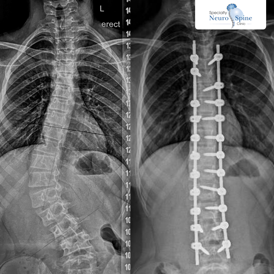 Dr. Firas Husban performed a successful minimally invasive spinal correction surgery, addressing a spinal curvature from the fourth thoracic vertebra (T4) to the fourth lumbar vertebra (L4).